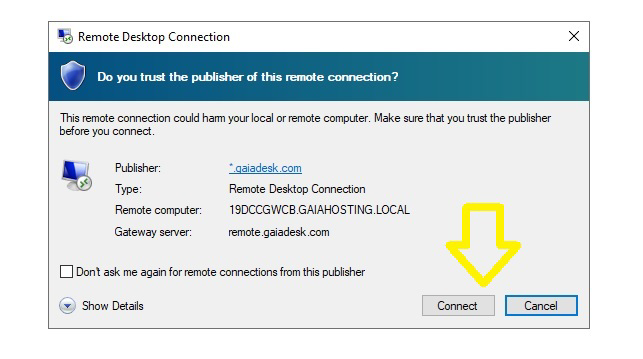 - If everything is good, you will be connected to Gaia remote desktop. Wait for it to load completely. You will see an earth icon (See picture below) on the desktop of Gaia remote desktop.